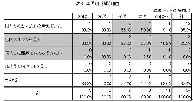 @入店している市町村への訪問意思を持つ来店者が3割強存在することを確認できた(図4)。一方、年代別では「とれたて村」のメイン顧客といえる50代以上で、訪問意思を持つ来店者の比率が低くなる傾向もみられた。(表2)
