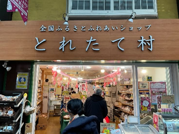 途中ご説明いただいたスポットは3か所あります。まずは旧街道のアーケードを入ってすぐの場所にある、戦前からある私設市場で生鮮3品や焼き鳥店が入る「だるま市場」。次は、振興組合直営のアンテナショップ「とれたて村」です。全国8自治体から地元産品を調達しています。振興組合が空き店舗を賃借し2005年に立ち上げました。店長以下7名の従業員を雇用しています。 3つ目はシェアキッチン「かめやキッチン」です。様々な飲食事業者が日替わりで出店するチャレンジショップの一種で、視察時は「三口一品キムチ専門店」が商品を並べていました。元は履物屋「かめや」の建物で、振興組合100%子会社「まちづくり大山みらい株式会社」が、空き家活用事業(アキサポ)を手掛ける株式会社ジェクトワンと連携の上、2020年に開業しました。