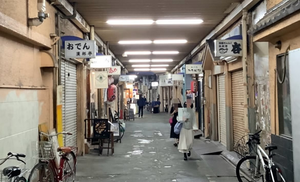 2023年10月7日、商店街研究会の月例会としてJR高円寺駅と阿佐ヶ谷駅間の高架下商業施設を視察しました。15時に鈴木隆男会長以下メンバー11人がJR高円寺駅前に集合。講師役を務めた商店街研究会会員、齋藤彰中小企業診断士の説明を聴きながら、高円寺駅の東は環七通りと交差する地点から、西は阿佐ヶ谷駅に至る約2kmの高架下区間を歩きました。 視察対象の「高架下」ですが、これは土木構築物である鉄道高架橋の下の建築物を指します。建築物の天井は高架橋の床と離れ、天井を支える柱は高架橋の支柱と独立しているのがポイントです。敷地はJR東日本の所有で、高架下建築物はその子会社のJR東日本都市開発(JRTK)の所有です。JRTKが建築物を管理し、テナントに賃貸しています。今回視察した区間は1966年(昭和41)の中野駅・荻窪駅間の高架化に伴って整備され、実に50年以上の歴史を有しています。 さっそく高架下区間を高円寺駅の東側から見てみましょう。中央線に並行する芸術会館通りの歩道に沿って高架下建築物に入居するコンビニ、自転車店などが路面店形式で営業しています。事務所や倉庫も散見されます。