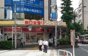 JR中野駅南口に集合後、吉田理事長の案内でナカノサウステラ(再開発ビル)の中と周辺の視察を行った。中野二丁目地区市街地再開発事業は業務棟「住友不動産中野駅前ビル」と住宅棟「中野ステーションレジデンス」の2棟で構成されいる。業務棟はJR中央線に近い場所にあり、その南側が住宅棟になる。業務棟の低層階の1階から5階が商業施設「ナカノサウステラ」になるが、業務棟と住宅棟は、ペデストリアンデッキで結ばれていて、その1階にくら寿司、ココカラファイン(ノイビル出店)、ミネドラック、京樽、ファミリーマート(ノイビル出店)、2階にセブンイレブン、吉野家、かつ丼のかつや(ノイビル出店)、喫茶ルノアール、ポニークリーニングや医療機関が出店している。業務棟2階の北側の最も通行量が多く目立つ場所に住友不動産の中野営業所が出店していて、吉田理事長は、最も避けたかったと考えている。住宅棟の東側に広場と公園があり、この広場でテントを張りマルシェ等の開催を考えている。